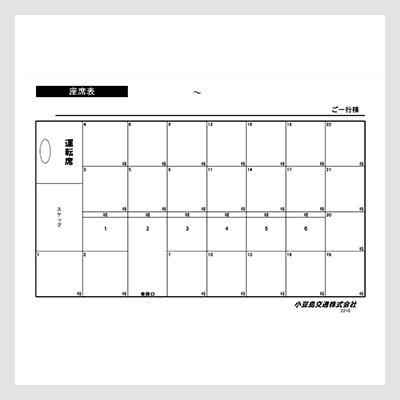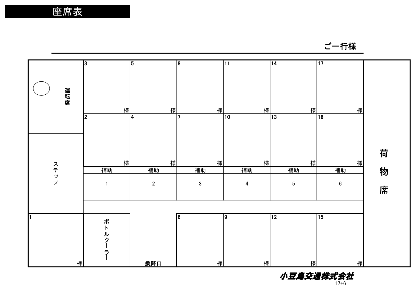 전세 버스단체 여행이나 기업 연수에 최적인 전세 버스 서비스. 고객의 스케줄에 맞추어 운행. 예약은 여기 0879-62-1203 55人乗りの大型バスから23人乗りの小型バスまで、お客様のニーズに合わせたバスをご用意しました。小豆島交通株式会社は、サークルや町内会での旅行、バスでのお遍路さん(小豆島八十八ヶ所霊場めぐり)など、いろいろなご要望にお応えいたします。 料金等はお見積もりさせていただきますので、どうぞお気軽にご連絡ください。 貸切バス運賃の計算については、여기をご確認下さい。 大型バス 正座席49席+補助席11席 正座席45席+補助席10席 正座席45席+補助席8席 マイクロバス 正座席17+補助席6 正座席21+補助席6 正座席22+補助席6 正座席18+補助席5 예약은 여기