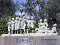 토조 항에있는 "24의 눈"의 청동 동상. 오나고 선생님 오오이시 선생님과 그것을 둘러싼 12명의 아이들의 미소가 인상적인 작품입니다. 기념 사진 명소로 대인기.