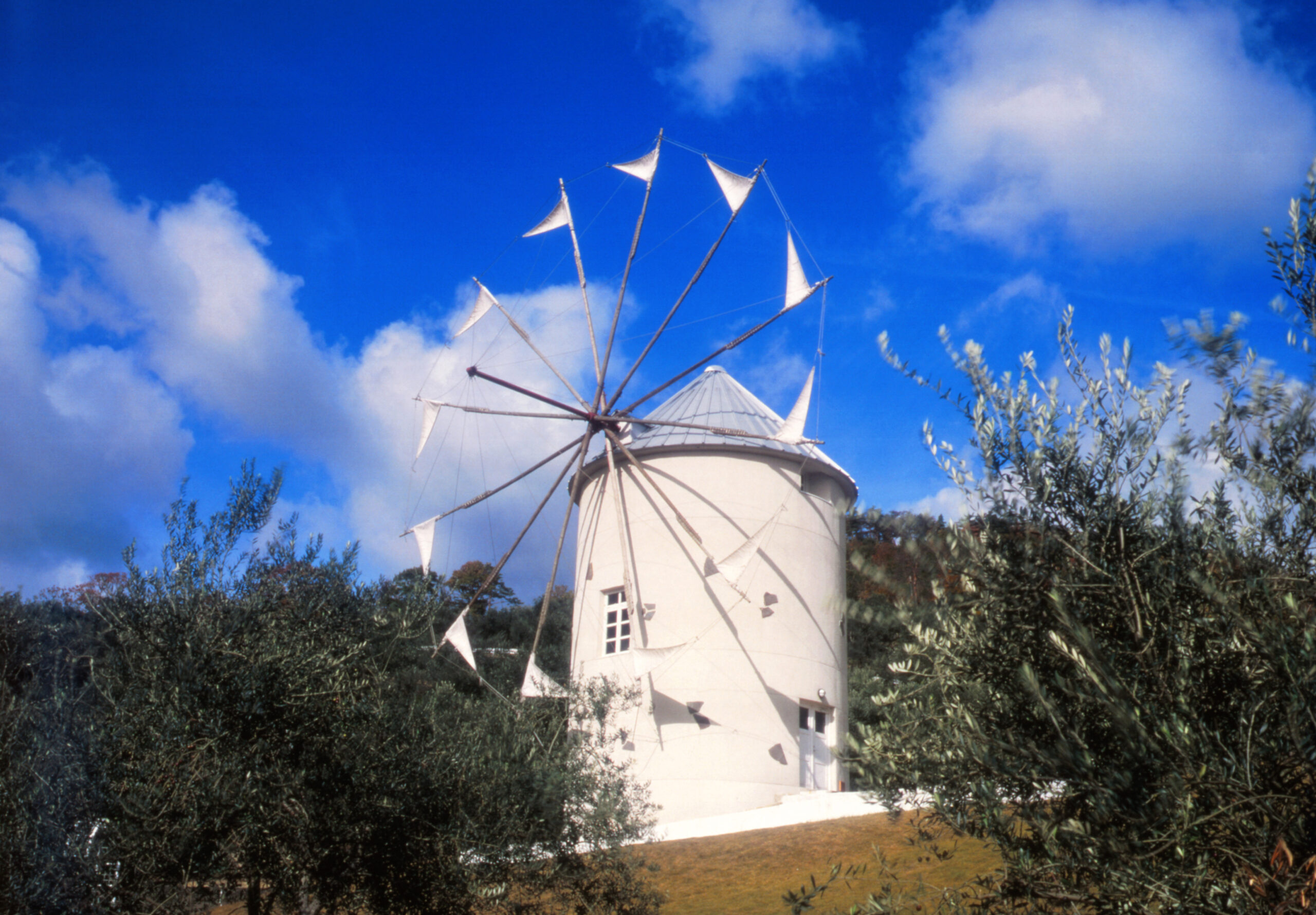 쇼도시마는 일본의 올리브 발상지! 공원 내에는 올리브원, 그리스 풍차나 허브 가든 등이 있어, 여러가지 체험 코너도 있습니다.