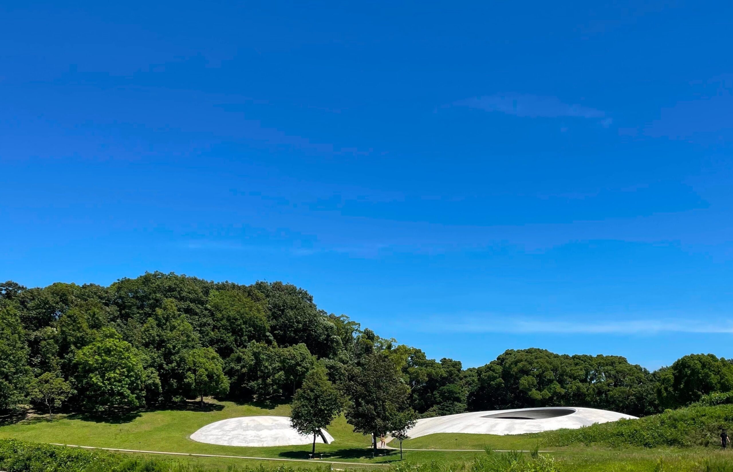瀬戸内海を望む豊島唐櫃(からと)の小高い丘に建設されたアーティスト・内藤礼と建築家・西沢立衛による「豊島美術館」。休耕田となっていた棚田を地元住民とともに再生させ、その広大な敷地の一角に、水滴のような形をした建物が据えられました。広さ40×60m、最高高さ4.5mの空間に柱が1本もないコンクリート・シェル構造で、天井にある2箇所の開口部から、周囲の風、音、光を内部に直接取り込み、自然と建物が呼応する有機的な空間です。内部空間では、一日を通して「泉」が誕生します。その風景は、季節の移り変わりや時間の流れとともに、無限の表情を伝えます。